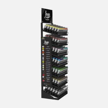 The 336X Display Rack is built to organize and present up to 336 spray cans, providing an immediate and clear view of your entire stock.