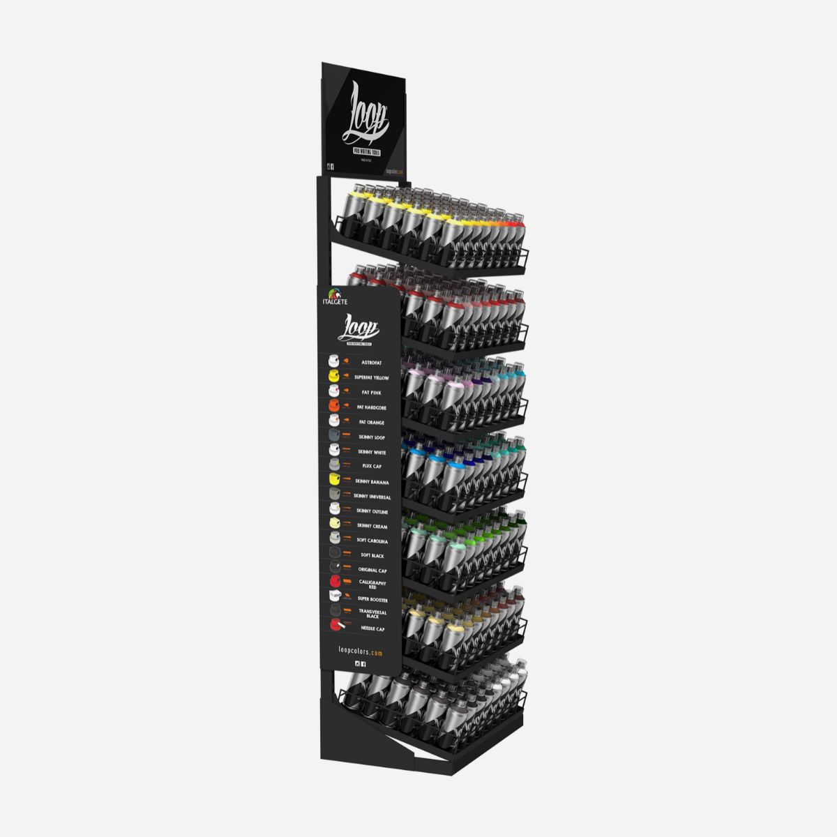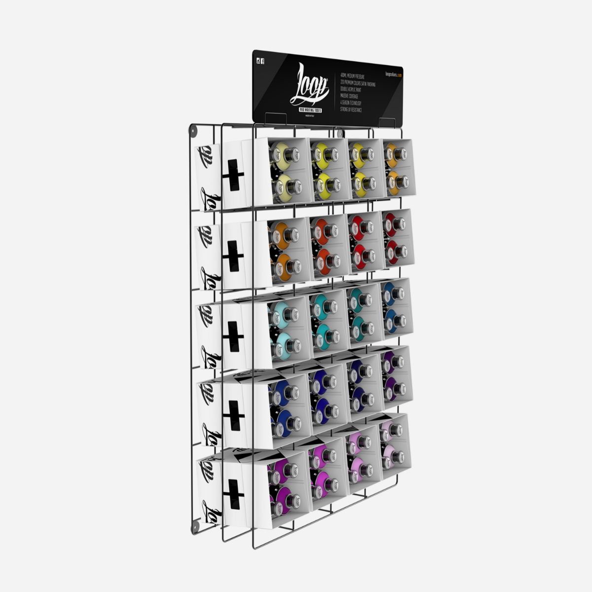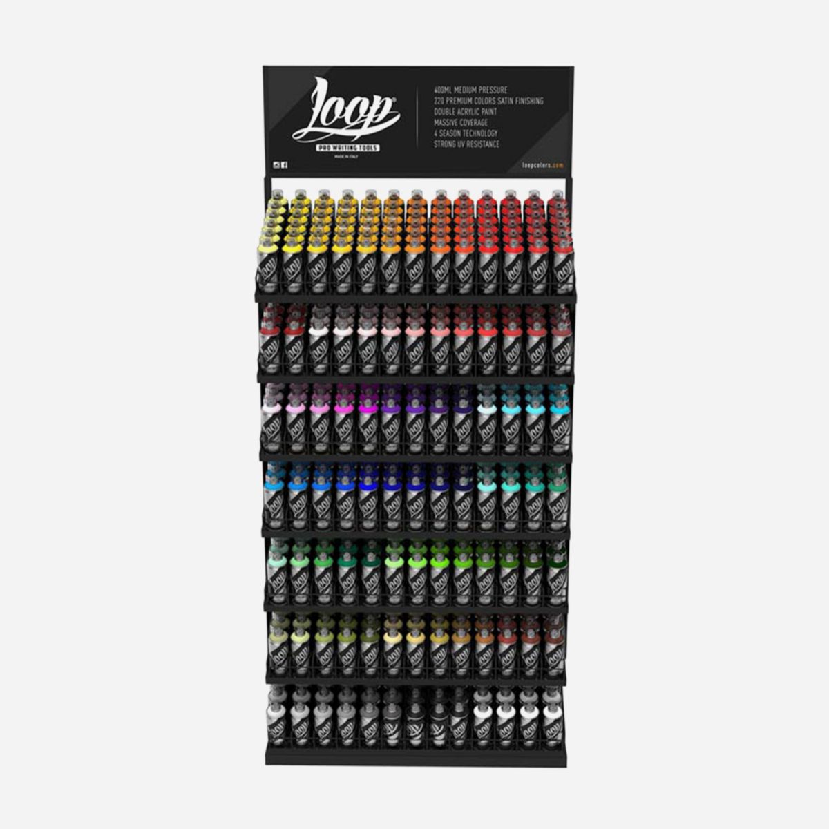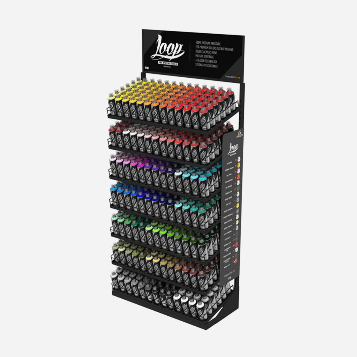 Designed for stores that want a full and impactful Loop Colors presentation. The 546X Display Rack combines professional storage capacity with optimal visibility, holding up to 546 spray cans for a complete overview at a glance. Ideal for larger retail spaces or for those who wish to display the full color range in one place.